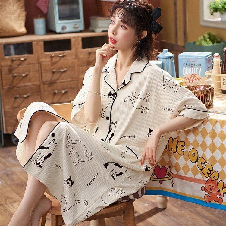 ネグリジェ パジャマ レディース 春夏新作 半袖ワンピース パジャマ 猫柄 前開きルームウェア 大きいサイズネグリジェ ロング丈ワンピース 部屋着 大人可愛い Fly カプリコーン 通販 Yahoo ショッピング